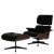 L’assise et le dossier sont en contreplaqué courbé-moulé et sont revêtus de coussins de cuir rembourrés de mousse et Dacron. Une partie de la coque constitue l’assise, une autre le dossier et la dernière l’appui-tête. La construction repose sur une structure en aluminium poli ou chromé avec côtés noirs si souhaité. Cette structure est composée d’un piétement central pivotant et de cinq pieds en forme d’étoile. Les accoudoirs en cuir tous aussi importants, sont également rembourrés et s’intègrent parfaitement à l’ensemble du design. L’Ottomane Eames accompagne de même ce design avec un piètement non-pivotant à quatre pieds, une coque de contreplaqué moulé et un revêtement en cuir rembourré. Le fauteuil Lounge Chair et son Ottomane sont disponibles en différentes sortes de bois et en un large choix de couleurs de cuir. Les Lounge Chairs & Ottoman Eames sont fabriqués, tout comme les autres meubles Eames, par Vitra pour l’Europe et l’Asie. Le succès de cette production n’a pas changé depuis 50 ans. La fabrication de ce classique du design des Eames comporte 47 étapes qui sont pour la plus part réalisées à la main. Ce qui a changé au cours des 50 dernières années, c’est la taille moyenne des individus. Celle-ci a augmenté de près de 10 cm selon les régions. C’est pourquoi le fauteuil Lounge Chair de Vitra a adapté la hauteur d’assise originelle de 84 cm et propose maintenant également une hauteur de 89 cm. Vitra, le fabricant du Lounge Chair & Ottoman offre à ses clients une expérience hors du commun. Effectivement, les visiteurs du Lounge Chair Atelier sur le Vitra Campus ont la possibilité de plonger dans l’univers Eames et d’accompagner la production de ce classique du design. Ils jetteront ainsi un coup d’œil au-dessus de l’épaule des professionnels de l’atelier afin d’observer les techniques et outils spéciaux utilisés pour la fabrication d’un original Lounge Chair et de son Ottomane par Vitra. À l’origine la coque du Lounge Chair ainsi que de son Ottomane était réalisée à partir du palissandre brésilien. Ce noble bois étant d’une grande rareté, a été interdit de commercialisation à partir de 1968 et, est classé depuis 1968 comme espèce protégée. Afin de se rapprocher optiquement le plus de ce bois, le Lounge Chair Vitra et la Lounge Chair Ottomane sont fabriqués avec du palissandre Santos. Après une version conçue par Hella Jongerius en noyer pigmenté blanc, Vitra a également ajouté à son assortiment une édition dont la coque est fabriquée en noyer pigmenté noir. Tous les placages du Lounge Chair et de l’Ottomane sont issus de bois où la gestion durable des forêts est appliquée. De plus, le siège Lounge Chair comme l’Ottomane Eames sont composés à 24 % de matériaux recyclés et ces meubles sont eux-mêmes recyclables à 29 %. Bien qu’ils puissent être recyclés, le Lounge Chair et l’Ottomane de Vitra sont théoriquement davantage pensés comme un classique du design que l’on transmet de générations en générations. Ce classique du design prend de la valeur avec le temps - non pas parce que la coque se patine avec le temps mais davantage par l'aspect du cuir qui comme Charles Eames le visualait à l'aspect d'un gant de premier gardien de base de baseball.