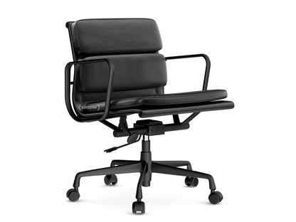 Soft Pad Chair EA 217, Aluminium finition époxy noir foncé, Cuir Premium F nero, Plano nero