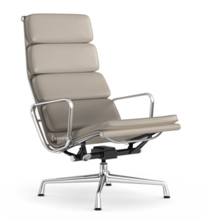Soft Pad Chair EA 222, Piétement chromé, Cuir Standard sable, Plano gris mauve