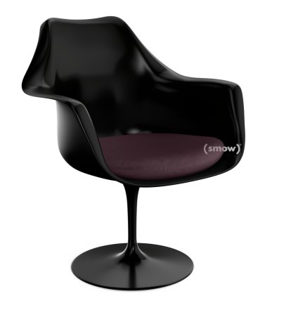Fauteuil Tulipe Saarinen, Statique, Coussin d'assise, Noir, Plum (Eva 119)