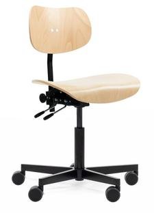 Chaises pivotantes S 197 R20, Sans accoudoirs, Hêtre naturel, Poudre noir mat, Roulettes standard noir pour tapis