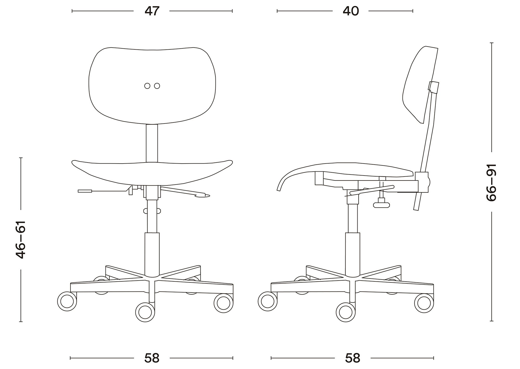 | Fonctions & Propriétés | Sur roues Réglage de la hauteur du siège SERVOLIFT Réglage mécanique de l'inclinaison du siège Hauteur du dossier réglable |