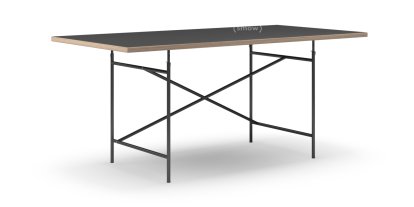 Table Eiermann, Linoleum noir (Forbo 4023) avec bords en chêne, 180 x 90 cm, Noir, Oblique, décalé (Eiermann 1), 110 x 66 cm