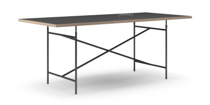 Table Eiermann, Linoleum noir (Forbo 4023) avec bords en chêne, 200 x 90 cm, Noir, Vertical, centré (Eiermann 2), 135 x 66 cm