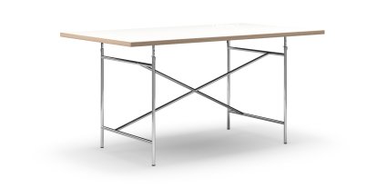 Table Eiermann, Mélaminé blanc avec bords chêne, 160 x 90 cm, Chromé, Oblique, centré (Eiermann 1), 110 x 66 cm