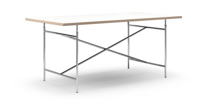 Table Eiermann, Mélaminé blanc avec bords chêne, 180 x 90 cm, Chromé, Vertical, centré (Eiermann 2), 135 x 78 cm