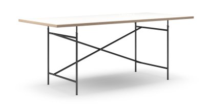 Table Eiermann, Mélaminé blanc avec bords chêne, 200 x 90 cm, Noir, Vertical, décalé (Eiermann 2), 135 x 66 cm