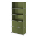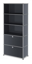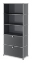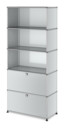 Dans le cadre d'une restructuration au début des années 60, le chef subalterne d'USM a chargé l'architecte Fritz Haller de planifier de nouveaux bâtiments de production et de bureaux. Après l'achèvement, il cherchait une solution appropriée pour l'aménagement intérieur, qui correspondrait à ses idées d'un ameublement flexible etqui serait basé sur le concept du bureau paysager. C'est ainsi que Fritz Haller a développé l'aménagement intérieur des bâtiments qu'il a conçus avec le système d'aménagement USM. Avec la commande d'équipement pour la banque Rothschild à Paris, la production en série de mobilier de bureau USM a commencé en 1969 et avec cela signe le commencement d'histoire à succès. USM Haller se caractérise toujours par son caractère modulaire et minimaliste : l'étagère à dossiers USM est également construite à partir des trois éléments de base avec lesquels une grande variété de meubles USM Haller peut être conçue en fonction des exigences et des différentes situations d'espace. Aujourd'hui, en plus des buffets USM Haller dans de nombreux designs, la gamme comprend également des tables USM Haller, des caissons roulant USM Haller et d'autres meubles. L'armoire à classeurs USM Haller comporte cinq compartiments, dont deux sont équipés de rabats.