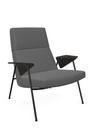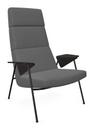 Fauteuil Votteler, Dossier haut, Tissu Gaia améthyste, Peint par poudrage noir mat, Chêne fumé