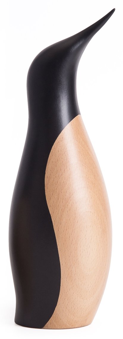 Grâce au fabricant Architectmade, les figurines en bois Penguin intègrent avec élégance des espaces de vie. Le designer Hans Bude les a dessinés en 1954 en deux tailles pouvant ainsi former une petite famille. Un beau contraste est créé par le grain naturel du bois sur le ventre et les surfaces peintes en noir de la tête, du dos et des ailes.