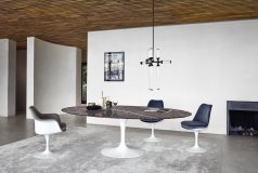 Le designer finlandais Eero Saarinen a étudié la sculpture et l'architecture à Paris et à Yale. Il a accepté un poste d'enseignant à la Cranbrook Academy et a fait la connaissance du designer Charles Eames, avec lequel il a dès lors noué une étroite amitié et collaboré. Pour Knoll International, Saarinen a créé des classiques intemporels avec sa Pedestal Collection. En font partie, outre la Tulip Chair, les tables à manger, tables d'appoint et tables basses Saarinen assorties. Saarinen était gêné par les pieds de chaise et de table "désordonnés" des meubles traditionnels et a développé à la place des modèles reposant sur un seul socle central. Les formes organiques et élégantes de la collection Pedestal sont aujourd'hui encore considérées comme un symbole du design futuriste et comptent parmi les créations les plus novatrices de l'histoire du design du 20e siècle.