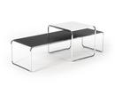 La table basse Laccio est une création de Marcel Breuer en 1925 réalisée au Bauhaus et peut désormais être achetée directement en tant que set Laccio. Aujourd'hui, le fabricant Knoll produit ce meuble au minimalisme et à la stricte géométrie, caractéristique du style Bauhaus. Effectivement, le piètement en tube d'acier continu relie les diverses formes rectangulaires colorées. Un jeu de composition entre les différentes hauteurs de tables donne un effet des plus attrayants.