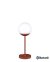 | Fonctions & Propriétés | Adéquat à un usage extérieur (dans des conditions sèches) Résistant aux UV Températures de lumière : 3000 K (blanc chaud) et 6000 K (blanc froid) Graduable en deux niveaux de luminosité chaude (3000 K) et deux niveaux de luminosité froide (6000 K) H 41 cm: 2,5 Watt LED 150 lm Bouton marche/arrêt sur le pied (y compris fonction d'assombrissement) Autonomie de la batterie : jusqu'à 16 h Rechargeable via USB (7 h) directement via le socle de la lampe H 63 cm: 7 Watt LED 500 lm Fonction marche/arrêt et gradation en touchant le plateau tournant (prise du diffuseur) ou via la fonction Bluetooth télécommandée "Fermob lighting" via Smartphone (sauvegarde de l'ambiance lumineuse, visualisation de l'état de la batterie) Autonomie de la batterie : jusqu'à 13 h Rechargeable via sur son socle de charge (4 h) |