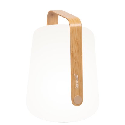 La lampe rechargeable Balad² Bambou, conçue par Tristan Lohner, ajoute une touche naturelle à ce design emblématique et constitue une source de lumière d'ambiance idéale pour le jardin, la terrasse ou les intérieurs confortables. Cette variante se distingue par sa poignée en bambou véritable, qui confère à cet objet technique un toucher chaleureux et organique et s'harmonise parfaitement avec son boîtier en polyéthylène robuste et résistant aux intempéries. Entièrement adaptée à une utilisation en extérieur, cette lampe offre différents niveaux de luminosité et températures de lumière et peut être positionnée de manière flexible et sans fil grâce à sa batterie intégrée.