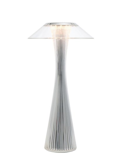 Inspirée par la tour Space Needle de Seattle, la lampe de table Space de Kartell apporte un chic futuriste dans l'intérieur. Sa taille fine et ses couleurs confèrent à la lampe Kartell du designer Adam Tihany une élégance particulière.