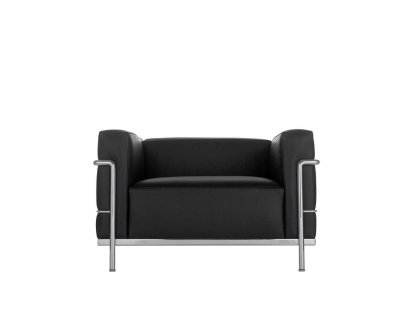 Le 2 Fauteuil Grand Confort, petit modèle, plus connu sous le nom de fauteuil LC2 le « panier à coussins » est un fauteuil composé de 5 coussins indépendants de la structure qui forment ainsi l’assise, le dossier et les accoudoirs. Une structure en métal, plus précisément en acier tubulaire laqué/chromé blanc, entoure les coussins, comme une sortie de cage. Cette indépendance entre la structure et le siège renvoie aux principes du rationalisme et à la logique de la production industrielle. Le fauteuil LC2 est désormais disponible en canapé et pouf.