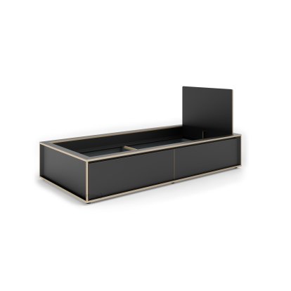 Spaze, du studio de design Kaschkasch, est le dernier né de l'élégante série de lits de Müller Small Living. Avec sa ligne minimaliste, il s'intègre sans problème dans les environnements les plus divers et offre beaucoup d'espace de rangement grâce à ses tiroirs spacieux. Le cadre et la tête de lit sont composés de panneaux multiplex en bouleau recouverts d'une couche de mélamine. Les bords naturels huilés forment un contraste harmonieux.