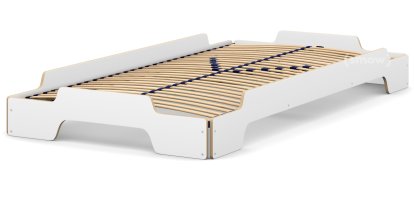 Lit empilable Rolf Heide, 100 x 200, CPL blanc, bords huilés et cirés, Cadre en bois massif