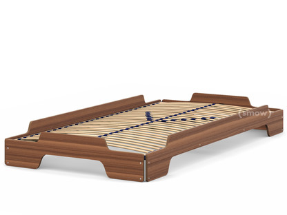 Lit empilable Rolf Heide, 100 x 200, Noyer laqué, Cadre en bois massif