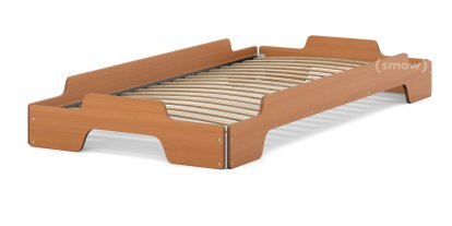 Le lit empilable, conçu en 1966 par Rolf Heide, conquit un large public grâce au savant mélange entre esthétique et fonction. Les côtés galbés attirent le regard et procurent une atmosphère conviviale dans la pièce où le lit est disposé. L’intelligence du système de construction est pensée avec un élément de liaison permettant d’empiler les lits les uns sur les autres. Selon l’envie ou la hauteur désirée, le système d’empilage répond aux diverses attentes tout en accordant un exceptionnel confort, digne d’une bonne literie. Il est ainsi possible d’accueillir un bon nombre de convives à coucher. C’est pourquoi, ce lit est particulièrement apprécié dans la chambre d’invités, dans les colocations, dans les gîtes et maisons d’hôtes. Également, les courbes du lit sont particulièrement adaptées pour la chambre d’enfant ou les dortoirs. Effectivement, l'absence de coins et de bords pointus est un sérieux avantage pour nos tendres bambins. La forme intéressante du lit permet d'économiser de l'espace et assure une stabilité. Disponible en différents types de bois et finitions, ce design correspond à tous les styles d’intérieurs et a été, à juste titre, considéré comme un classique moderne par le magazine « Home Sweet Home ».