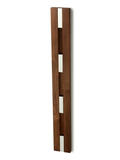 Knax Lodret, conçu par Harrit & Sørensen A/S pour le fabricant danois LoCa, est un portemanteau dans un style minimaliste qui a été créé dans les années 1990 en lien avec la tradition du design scandinave. Le porte-manteau Knax peut être réalisé en différents types de bois, les quatre crochets eux sont en aluminium et peuvent être repliés et dépliés selon les besoins. Lorsqu'ils ne sont pas utilisés, ils sont rabattus contre la barre en bois pour un effet chic et discret. La particularité de Lodret by LoCa est que le portemanteau est monté verticalement sur le mur, ce qui semble peu conventionnel pour le rangement des vestes et manteaux. Le produit doit son nom à ce fait, car "lodret" est tiré de la langue danoise et signifie "vertical". La série de produits Knax de LoCa comprend également d'autres portemanteaux, y compris une version horizontale.