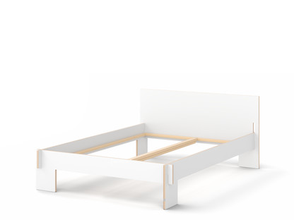 Le FU (contreplaqué bouleau), revêtu d'un film, est un produit de qualité supérieure fabriqué industriellement en panneau. Le procédé de revêtement de film peut être visible sur certaines surfaces. Les différences de couleurs et de structures du bois, les petites rayures ainsi que des points de pressions sont possibles. Les parties de la construction en bois cachées sous le lit (traverse, sommier à lattes) peuvent avoir de petites échardes et une décoloration sur certains endroits. Cela ne pose pas de problèmes optiques sur l'ensemble de la construction. Moormann offre un esthétisme optimal, mais se base surtout sur l'aspect fonctionnel et technique.