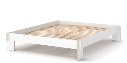 Le FU (contreplaqué bouleau), revêtu d'un film, est un produit de qualité supérieure fabriqué industriellement en panneau. Le procédé de revêtement de film peut être visible sur certaines surfaces. Les différences de couleurs et de structures du bois, les petites rayures ainsi que des points de pressions sont possibles. Les parties de la construction en bois cachées sous le lit (traverse, sommier à lattes) peuvent avoir de petites échardes et une décoloration sur certains endroits. Cela ne pose pas de problèmes optiques sur l'ensemble de la construction. Moormann offre un esthétisme optimal, mais se base surtout sur l'aspect fonctionnel et technique.