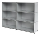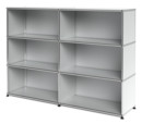 Le design du mobilier de bureau USM se caractérise avant tout par la mise en œuvre sans compromis d'une approche fonctionnelle. Grâce à la structure de base simple, composée de tubes métalliques, de parois métalliques et de boules de laiton chromé qui relient les éléments, le système de meuble est modulaire et permet de concevoir des solutions d'ameublement complexes et individuelles. L'Highboard USM L possède six compartiments ouverts ou fermés et se distingue comme l'un des configurations classiques du système USM Haller. La gamme comprend également des caissons roulant USM Haller et des tables USM Haller. Les meubles USM Haller se caractérisent par une fonctionnalité, mais aussi, des lignes élégantes pour meubler les intérieurs de bureaux et de salons et de chambres. Développés uniquement, à l'origine, pour l'utilisation propre de l'usine USM, les étagères USM Haller sont devenues un classique du design international, en particulier dans le domaine du mobilier de bureau depuis le début de la production en série en 1969. Ces dernières années, cependant, le système d'aménagement s'est popularisé et s'invite dans les espaces domestiques pour les amoureux du style industriel notamment.