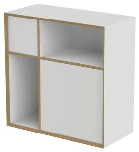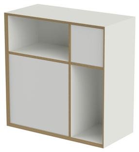 L'étagère Vertiko Ply du designer Sascha Sartory pour le fabricant Müller Small Living peut être fixée au mur ou posée au sol. Il existe en quatre versions différentes et peut être disposé verticalement et horizontalement selon les préférences. La particularité de Vertiko Ply réside dans l'agencement des compartiments, jouant sur les espaces ouverts et fermés, ce qui crée un motif insolite.