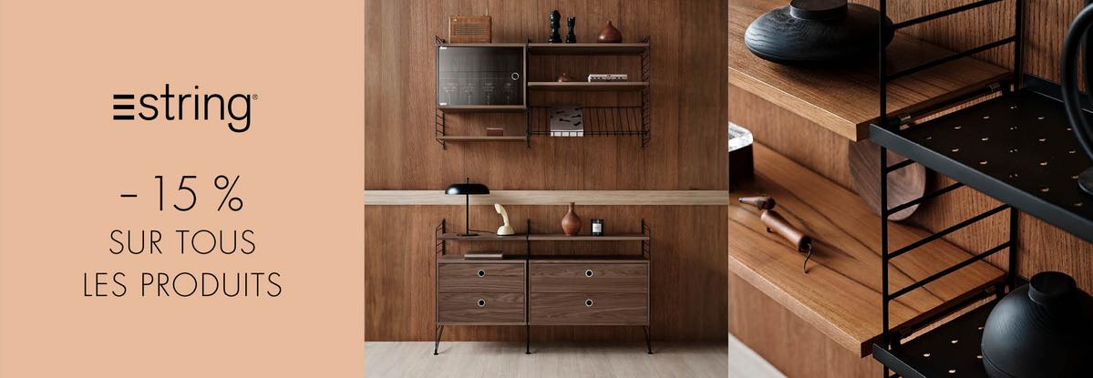 Vive le rangement avec String : 15 % de réduction sur le tout le système d'étagères String