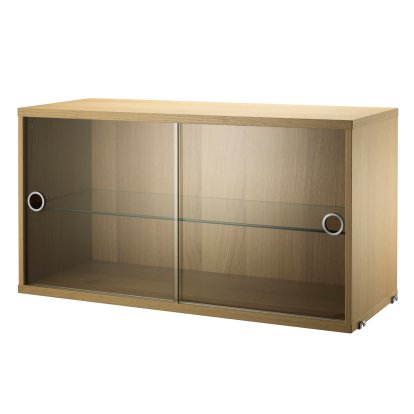 La vitrine avec portes coulissantes en verre de String System attire tous les regards dans n'importe quelle pièce. Elle offre un espace de rangement pour les objets fragiles qui peuvent être exposés avec style. La vitrine se compose d'une étagère en verre qui peut être déplacée. Les éléments de l'armoire conviennent à toutes les échelles grillagées de String System d'une profondeur de 30 cm.