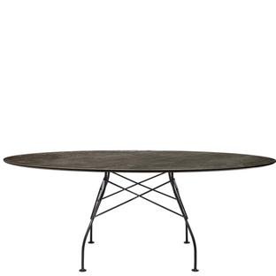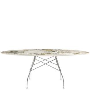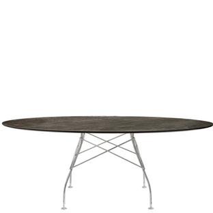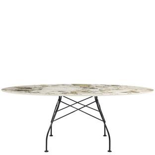 La table Glossy de Kartell a été conçue par Antonio Citterio, connu pour ses meubles de bureau fabriqués pour Vitra qui l'ont rendus célèbre. La table Glossy se distingue par son plateau de table lourd et imposant en pierre et sa construction en acier solide. La table semble légère sans perdre de sa valeur.