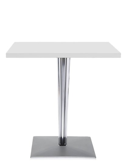 La table Top Top, très appréciée des restaurants et des cafés, se caractérise par un pied central transparent ou en aluminium verni rond ou carré, avec une surface plissée et une structure métallique. Le plateau comme le pied peuvent être ronds ou carrés. Les différentes dimensions et formes (le plateau de la table peut être rond ou rectangulaire) ainsi que la variété des matériaux disponibles font de Top Top un produit particulièrement polyvalent et adapté à tous les besoins d’ameublement que ce soit dans l'espace domestique ou public, mais aussi intérieur ou extérieur.