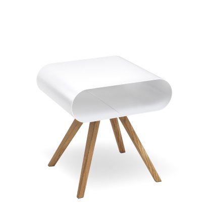Par exemple, les découpes caractéristiques de la table d'appoint Weber minimaliste d'Objekte unserer Tage sont découpées dans l'acier revêtu par poudre à l'aide d'une technique laser innovante.