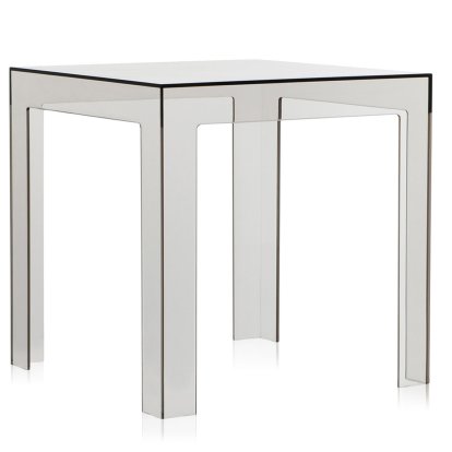 Jolly de Paolo Rizzatto pour Kartell est une petite table d'appoint, rectangulaire et transparente mettant l'accent sur l'atmosphère d'un salon ou d'une terrasse ou d'un jardin avec ses couleurs joyeuses et pastels. Effectivement, faite en plastique, elle résiste à des températures hivernales et se définit ainsi comme un meuble parfait pour l'extérieur. En association avec les chaises Ghost de Philippe Starck, l'ensemble, jeu de translucidité harmonieuse, émerveillera ses usagers. L'entreprise Kartell, qui possède une longue histoire de fabricant, s'est spécialisée dans les meubles de design en plastique. La gamme de produits est fonctionnelle, mais surtout, choisit des objets de caractère.