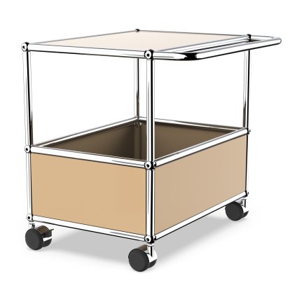 USM Haller table de bar, Avec poignées á chariot, Beige USM, Roulettes dures pour tapis