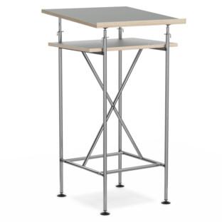 Le pupitre Milla au style Eiermann est produit par Richard Lampert à Stuttgart. Si les qualités techniques et novatrices des produits ont toujours beaucoup compté pour l’entreprise, la durabilité demeure également au centre de ses préoccupations. Cela signifie d’une part que les meubles sont créés pour résister aux tendances éphémères et d’autre part, que leur qualité permet de les conserver très longtemps. Le piétement de ce pupitre est disponible en acier naturel, chromé ou argenté ou encore en version laquée noire ou blanche. Le plateau est en mélaminé ou en linoleum avec les bords en chêne. Pour la version en linoléum, les couleurs noir, bleu, gris ou rouge sont disponibles, tandis que la version en mélaminé offre le choix entre noir et blanc.