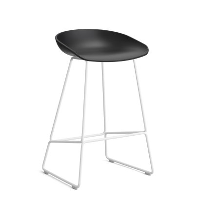 About A Stool AAS 38, Version cuisine: hauteur de l'assise 64 cm, Acier thermolaqué blanc, Black 2.0
