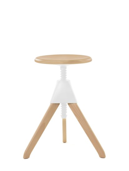 Tom & Jerry, conçu par Konstantin Grcic pour Magis, est une réinterprétation moderne et colorée du tabouret à vis classique que l'on retrouve dans les ateliers. Tom, le plus grand tabouret, convient comme tabouret de bar dans la cuisine ou un bistro alternatif, tandis que Jerry fait office de petit tabouret classique. Les deux sont réglables en hauteur de 16 cm et se déclinent en différentes couleurs. Les éléments laqués colorés forment un contraste élégant avec le corps en hêtre massif. En 2013, Grcic a reçu le prix du design de la République fédérale d'Allemagne pour son design. Le fabricant italien Magis développe des produits et des objets en collaboration avec de nombreux designers de renommée internationale utilisant des matériaux et des techniques innovantes.