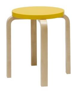 Tabouret E60, Assise laquée jaune, pieds bouleau laqué nature