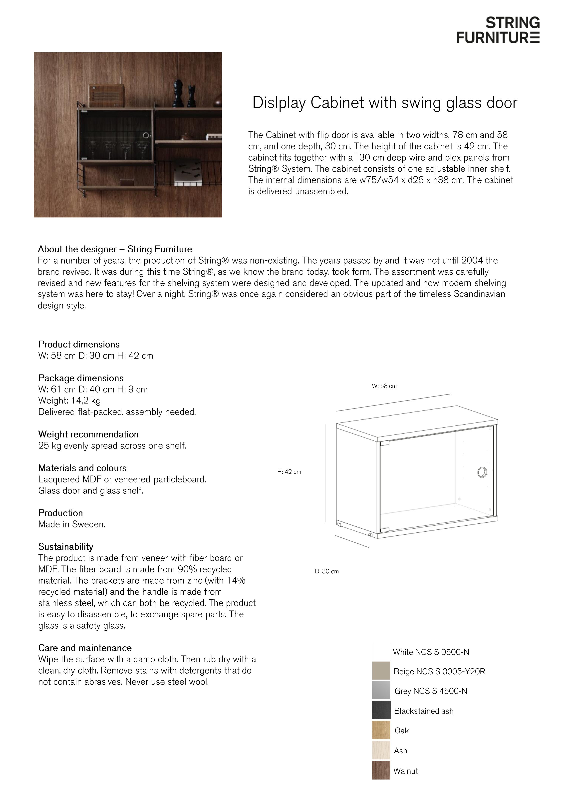 | Type de produit | Élément de meuble à porte en verre coulissante pour étagère String |