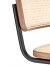 | Matériaux | Piètement : tube d'acier, revêtu par poudre noir Assise/dossier : cannage avec tissu de soutien sous l'assise Cadre/accotoirs : bois massif de chêne ou de noyer, finition à l'huile Patins : Patins en POM noir (allround, avec téflon) |