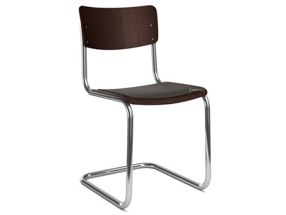 Chaise cantilever S 43 classique, Piétement chromé, Hêtre teinté, Marron foncé (TP 89), Coussin d'assise sans rembourrage noir, Sans patins