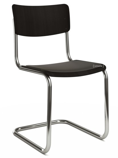 Chaise cantilever S 43 classique, Piétement chromé, Hêtre teinté, Noir (TP 29), Coussin d'assise avec rembourrage noir, Sans patins