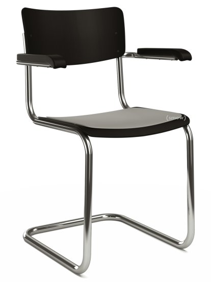 | Variantes | Assise et dossier: hêtre contreplaqué laqué, teinté ou vernis structuré Cadre: acier chromé ou brossé satiné En option avec coussin d'assise en feutre rembourré/non rembourré En option avec patins pour sols durs La version sans accotoirs S 43 Classique et Chaise S 43 Classiques en Couleur est également disponible |