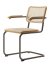 | Matériaux | Piètement : tube d'acier, chromé fumé mat ou revêtu par poudre noir Assise/dossier : cannage avec tissu de soutien sous l'assise Cadre/accotoirs : bois massif de chêne ou de noyer, finition à l'huile Patins : Patins en POM noir (allround, avec téflon) |