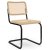 | Matériaux | Cadre: bois massif chêne ou frêne ou noyer, finition à laqué Assise/dossier : cannage avec tissu de soutien sous l'assise Piètement : tube d'acier chromé ou revêtu par poudre noir profond Patins (facultatif): plastique, noir |