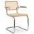 | Matériaux | Cadre/accotoirs : bois massif chêne ou frêne ou noyer, finition à laqué Assise/dossier : cannage avec tissu de soutien sous l'assise Piètement : tube d'acier chromé ou revêtu par poudre noir profond Patins (facultatif): plastique, noir |