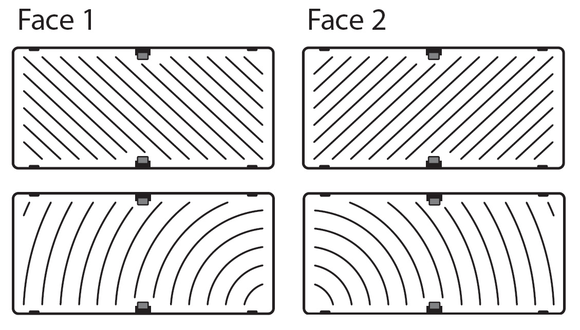 | Variantes | Disponible au choix avec un motif rainuré diagonal ou rond identique des deux côtés![]() |
