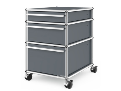 Caisson à roulettes USM Haller 3 tiroirs Type 2, Sans serrures, Gris moyen RAL 7005